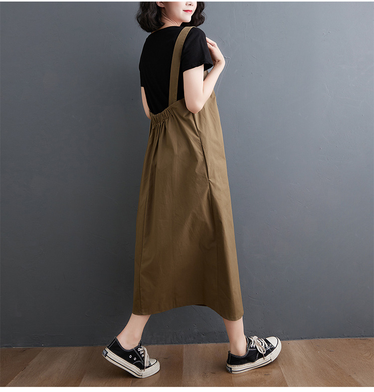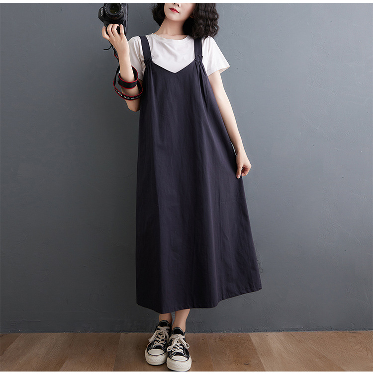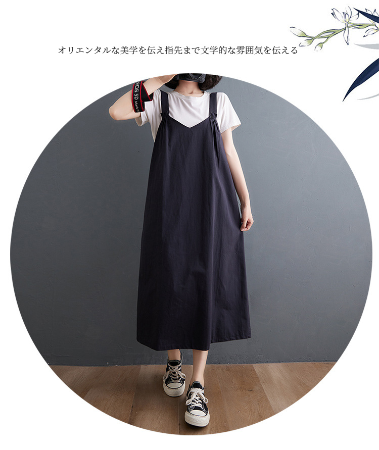 夏のルーズな大きいサイズのドレス女性 ミッドレングス年齢不詳バックストラップドレス 文学的な夏のドレス