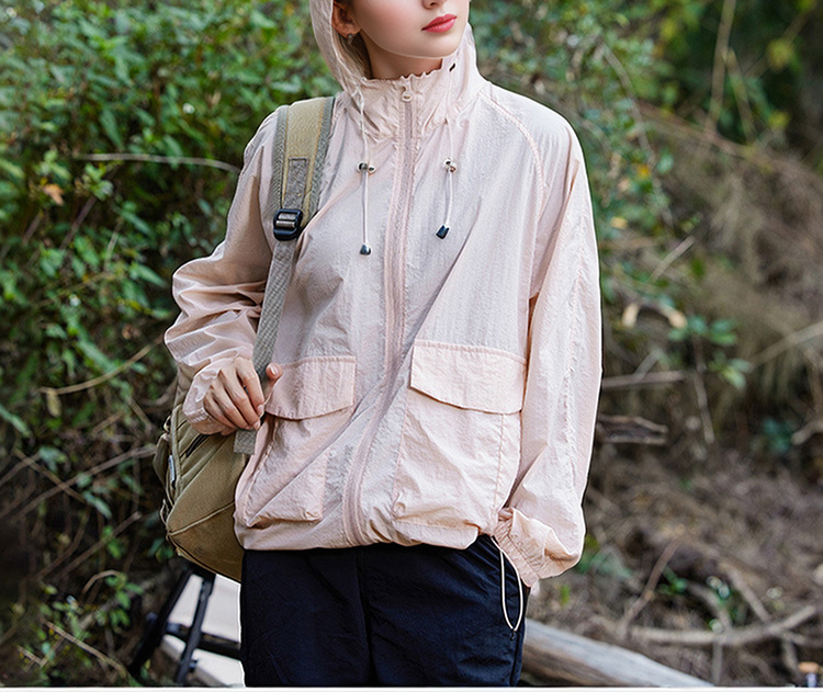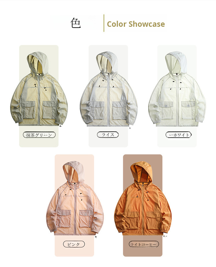 カップル日焼け止め作業服フード付きパンチングジャケット 軽量長袖スキンスーツ スポーツアウトドア夏の日焼け止め夏のアウトドア用品