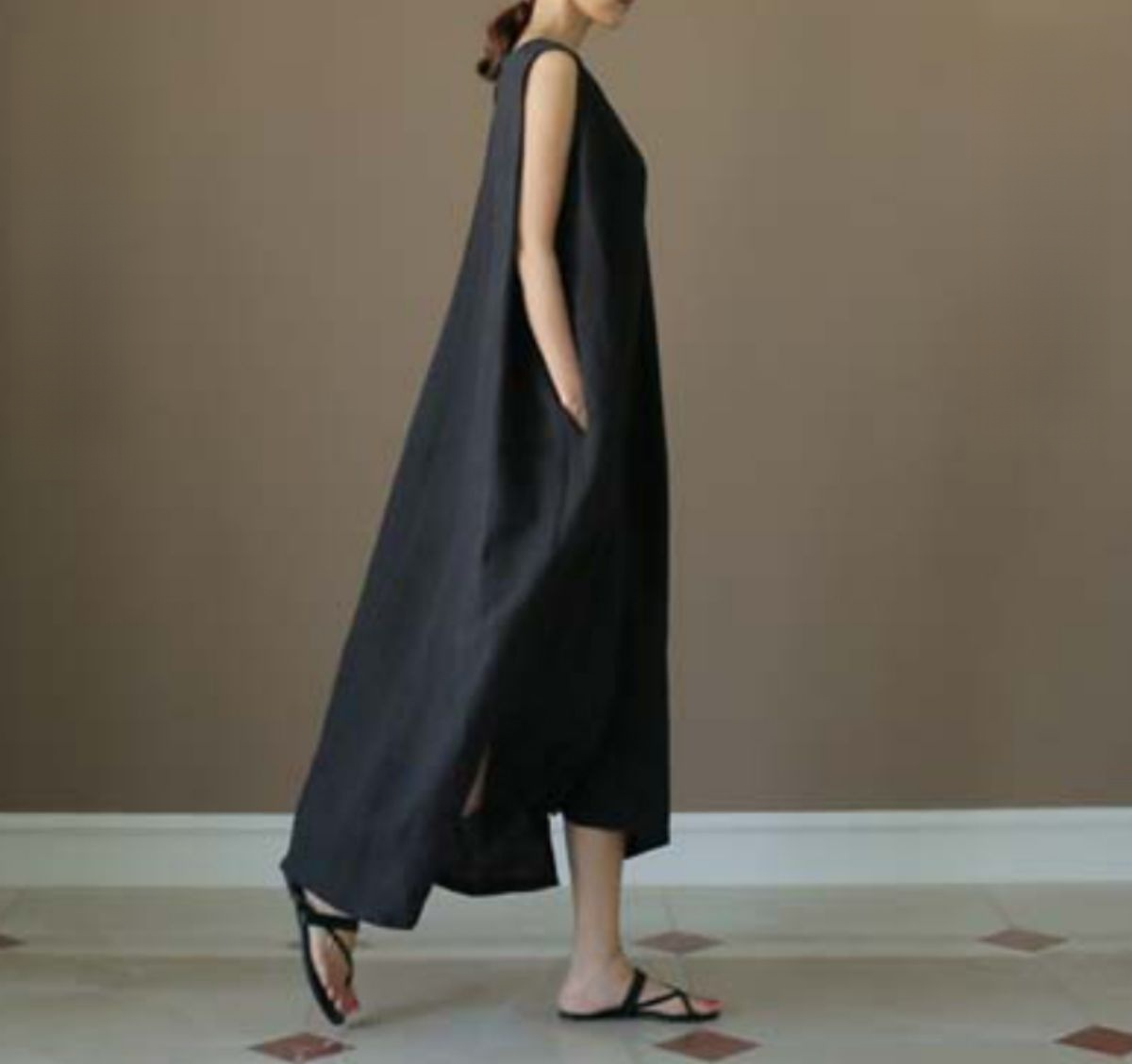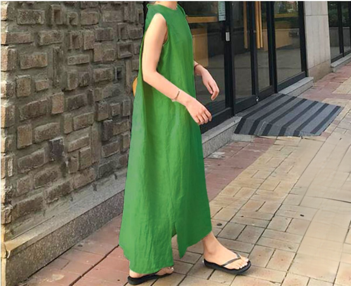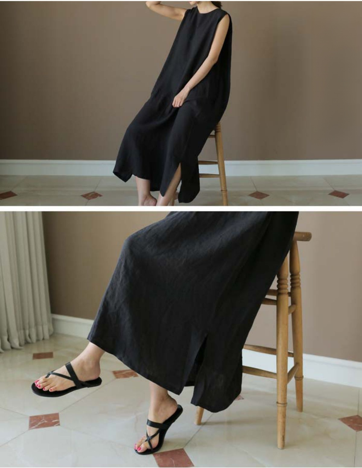 ベスト・ノースリーブ・ドレス ラウンドネック良質7色スプリットドレス
